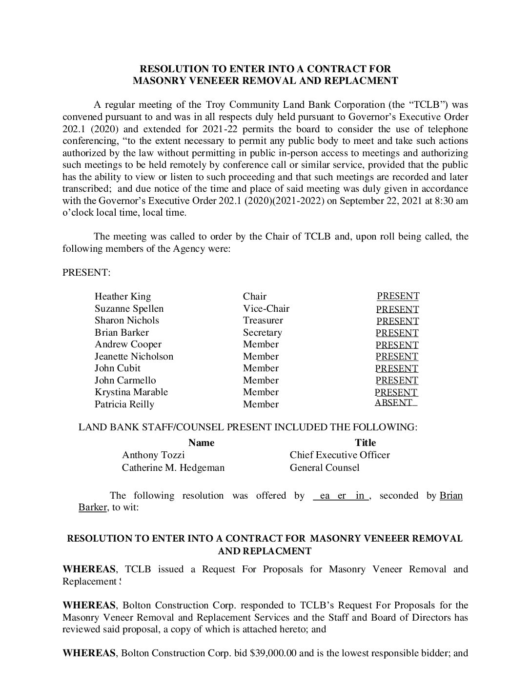 09.22.2021 Resolution to Enter into Contract with Bolton Construction for Masonry Veneer Removal and Replacement Gallery 09.22.2021 Resolution to Enter into Contract with Bolton Construction for Masonry Veneer Removal and Replacement 09.22.2021 Resolution to Enter into Contract with Bolton Construction for Masonry Veneer Removal and Replacement John Ellis2025-07-13T14:06:00-04:00September 22, 2021| Read More
