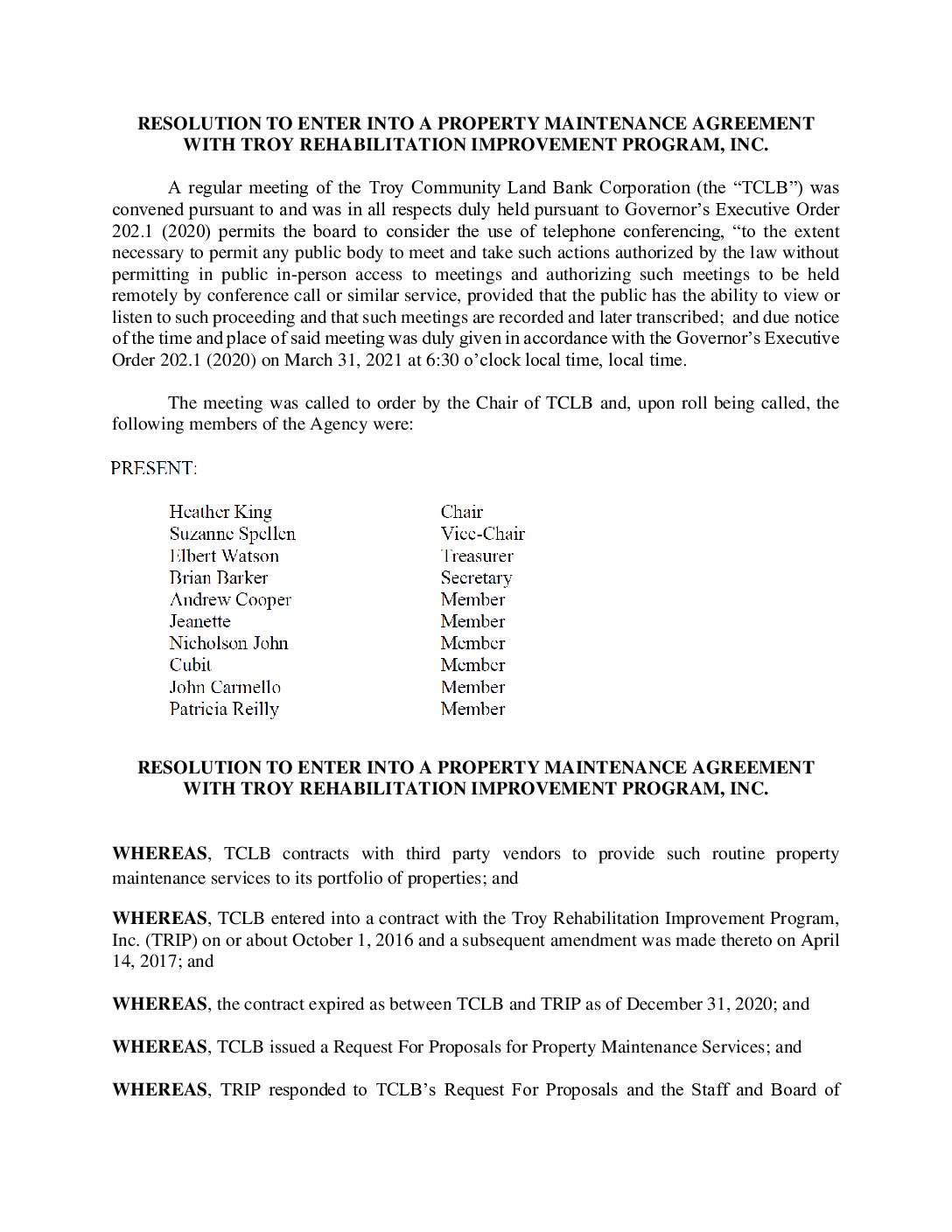 03.31.2021 Resolution to Enter into Property Maintenance Agreement with TRIP Gallery 03.31.2021 Resolution to Enter into Property Maintenance Agreement with TRIP 03.31.2021 Resolution to Enter into Property Maintenance Agreement with TRIP John Ellis2025-07-13T14:08:16-04:00March 31, 2021| Read More