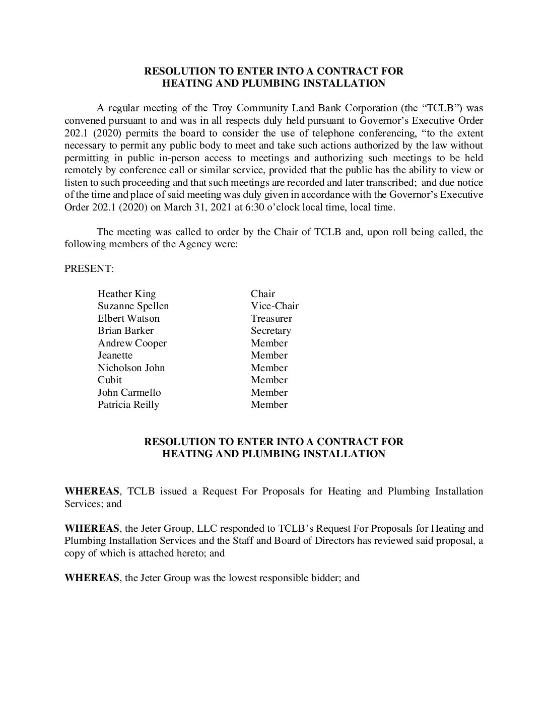 03.31.2021 Resolution to Enter into Contract with Jeter Group for Plumbing and Heating Installation 54 Fifth Ave Gallery 03.31.2021 Resolution to Enter into Contract with Jeter Group for Plumbing and Heating Installation 54 Fifth Ave 03.31.2021 Resolution to Enter into Contract with Jeter Group for Plumbing and Heating Installation 54 Fifth Ave John Ellis2025-07-13T14:08:35-04:00March 31, 2021| Read More