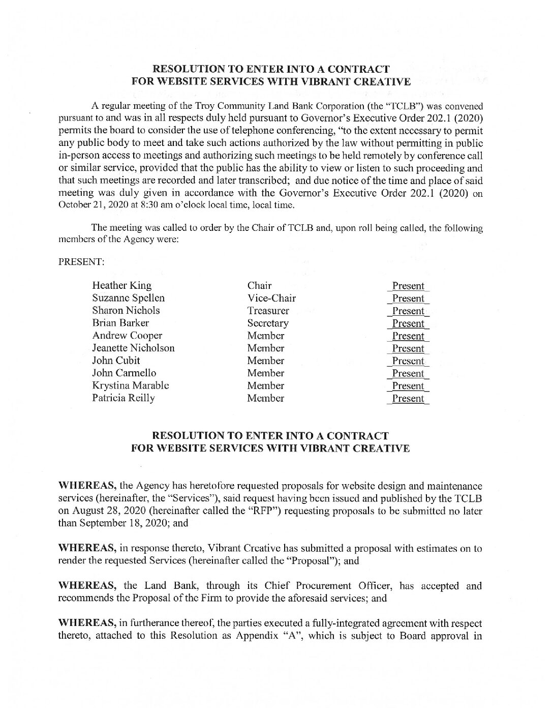 10.21.2020 Resolution to Enter into Contract for Website Services with Vibrant Creative Gallery 10.21.2020 Resolution to Enter into Contract for Website Services with Vibrant Creative 10.21.2020 Resolution to Enter into Contract for Website Services with Vibrant Creative John Ellis2025-07-13T13:47:50-04:00October 21, 2020| Read More