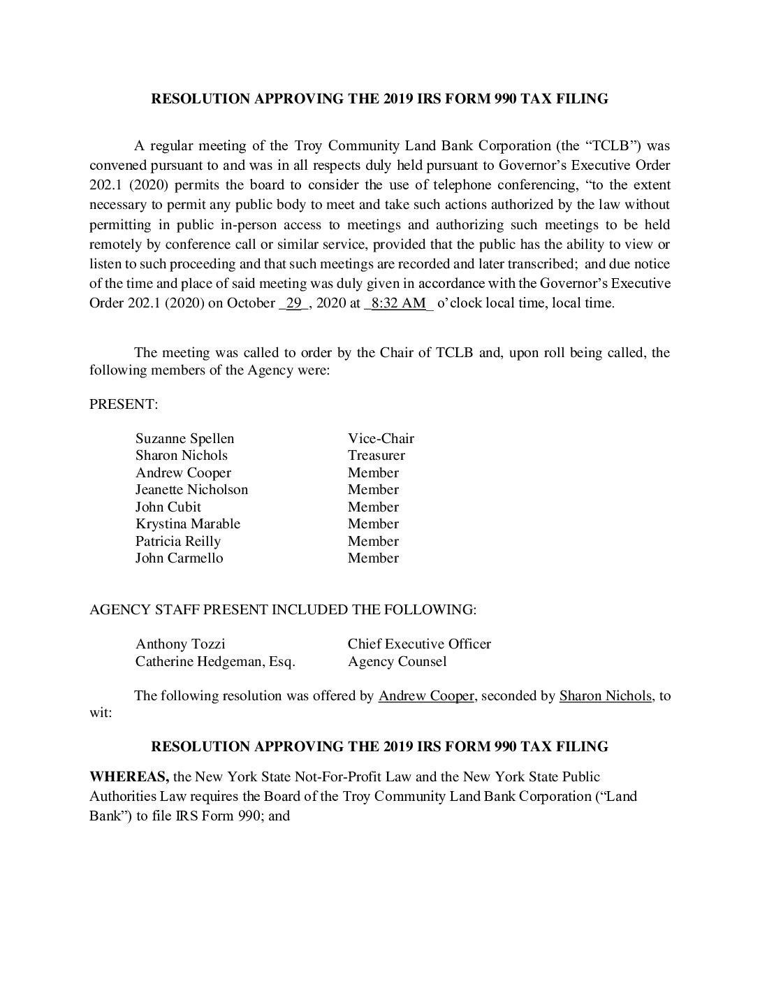 10.29.2020 Resolution Approving the 2019 IRS Form 990 Tax Filing Gallery 10.29.2020 Resolution Approving the 2019 IRS Form 990 Tax Filing 10.29.2020 Resolution Approving the 2019 IRS Form 990 Tax Filing John Ellis2025-07-13T13:47:13-04:00October 29, 2020| Read More