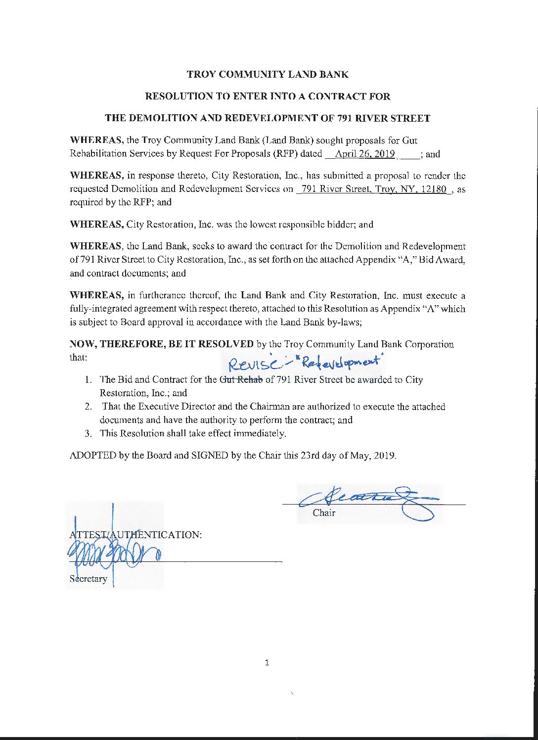 05.23.2019 Resolution to Enter into Contract with City Restoration for Demolition and Redevelopment of 791 River St Gallery 05.23.2019 Resolution to Enter into Contract with City Restoration for Demolition and Redevelopment of 791 River St 05.23.2019 Resolution to Enter into Contract with City Restoration for Demolition and Redevelopment of 791 River St John Ellis2025-07-13T12:53:46-04:00May 23, 2019| Read More