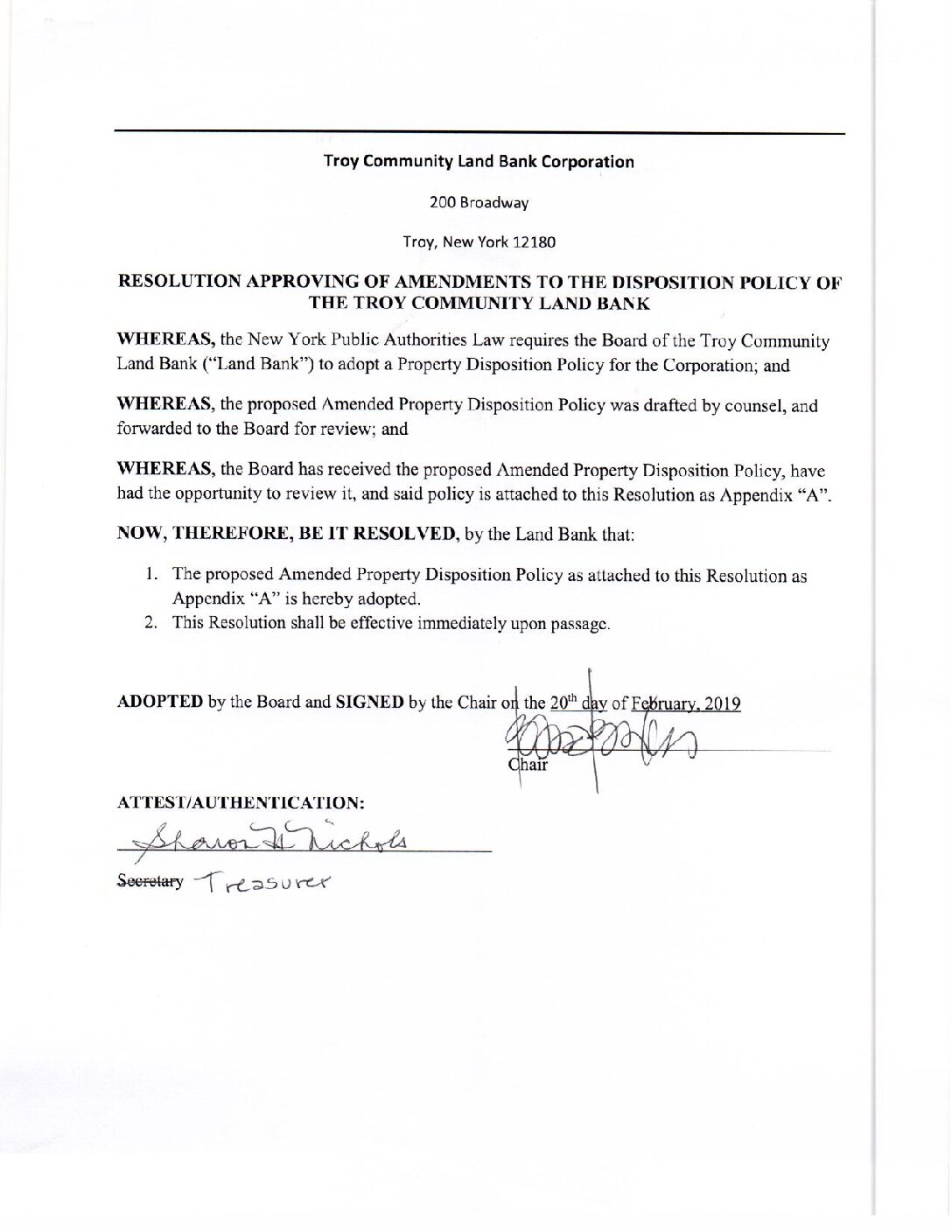 02.20.2019 Resolution Approving of Amendments to the Disposition Policy Gallery 02.20.2019 Resolution Approving of Amendments to the Disposition Policy 02.20.2019 Resolution Approving of Amendments to the Disposition Policy John Ellis2025-07-13T13:11:50-04:00February 20, 2019| Read More