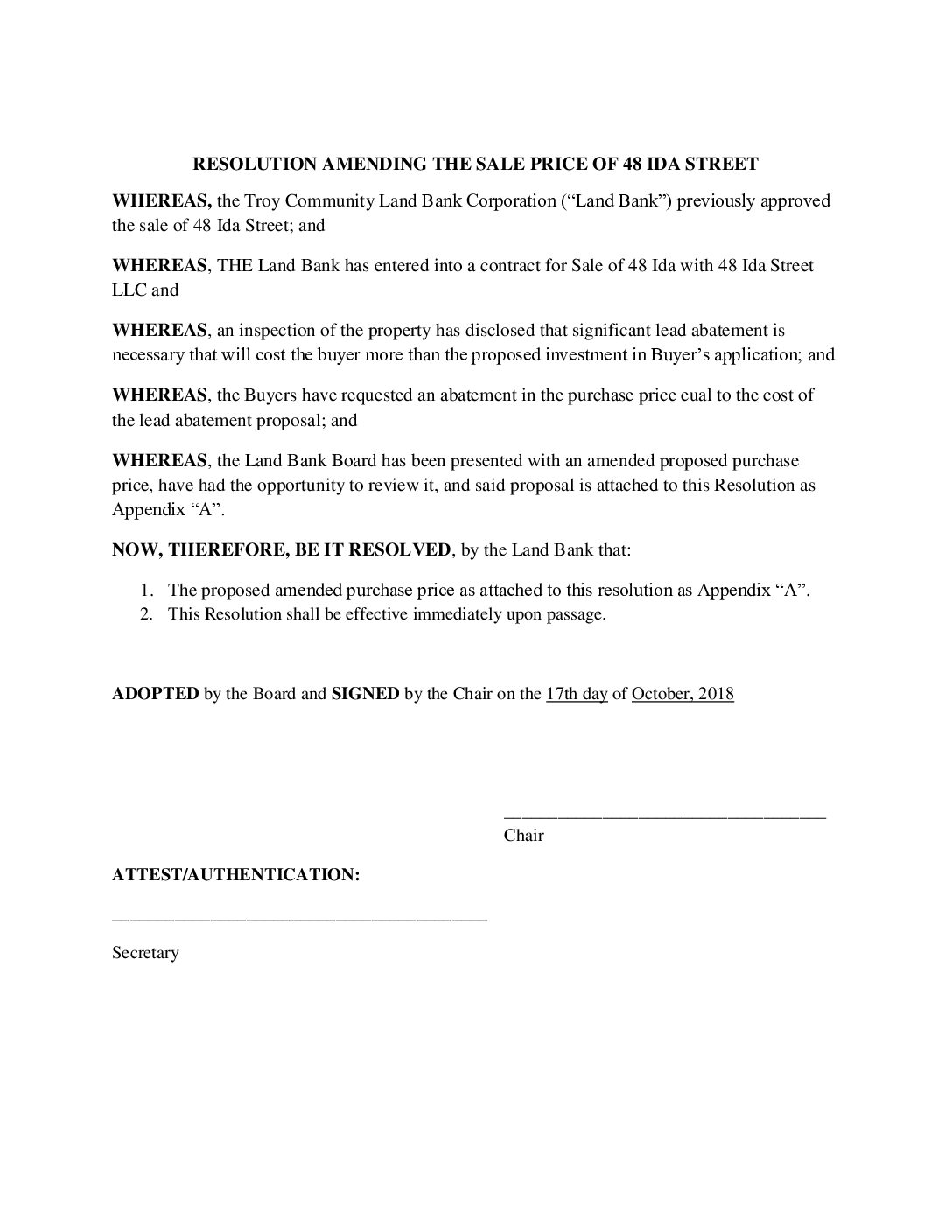 10.17.2018 Resolution Amending Sale Price of 48 Ida St Gallery 10.17.2018 Resolution Amending Sale Price of 48 Ida St 10.17.2018 Resolution Amending Sale Price of 48 Ida St John Ellis2025-07-13T12:18:06-04:00October 17, 2018| Read More