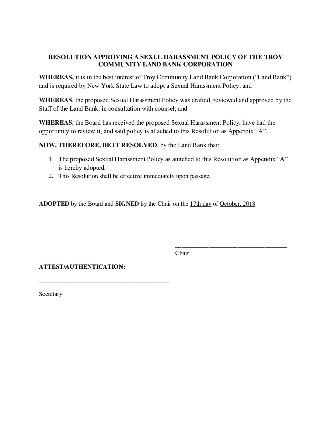 10.17.2018 Resolution Approving Sexual Harassment Policy of TCLB Corp Gallery 10.17.2018 Resolution Approving Sexual Harassment Policy of TCLB Corp 10.17.2018 Resolution Approving Sexual Harassment Policy of TCLB Corp John Ellis2025-07-13T12:17:25-04:00October 17, 2018| Read More
