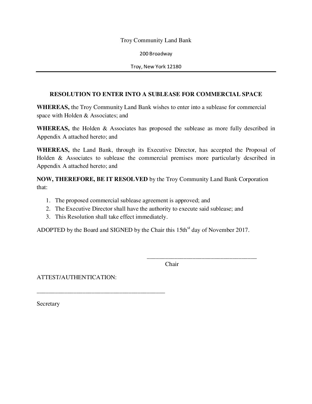 11.15.2017 Resolution to Enter into Sublease with Holden for Commercial Space Gallery 11.15.2017 Resolution to Enter into Sublease with Holden for Commercial Space 11.15.2017 Resolution to Enter into Sublease with Holden for Commercial Space John Ellis2025-07-09T17:39:20-04:00November 15, 2017| Read More