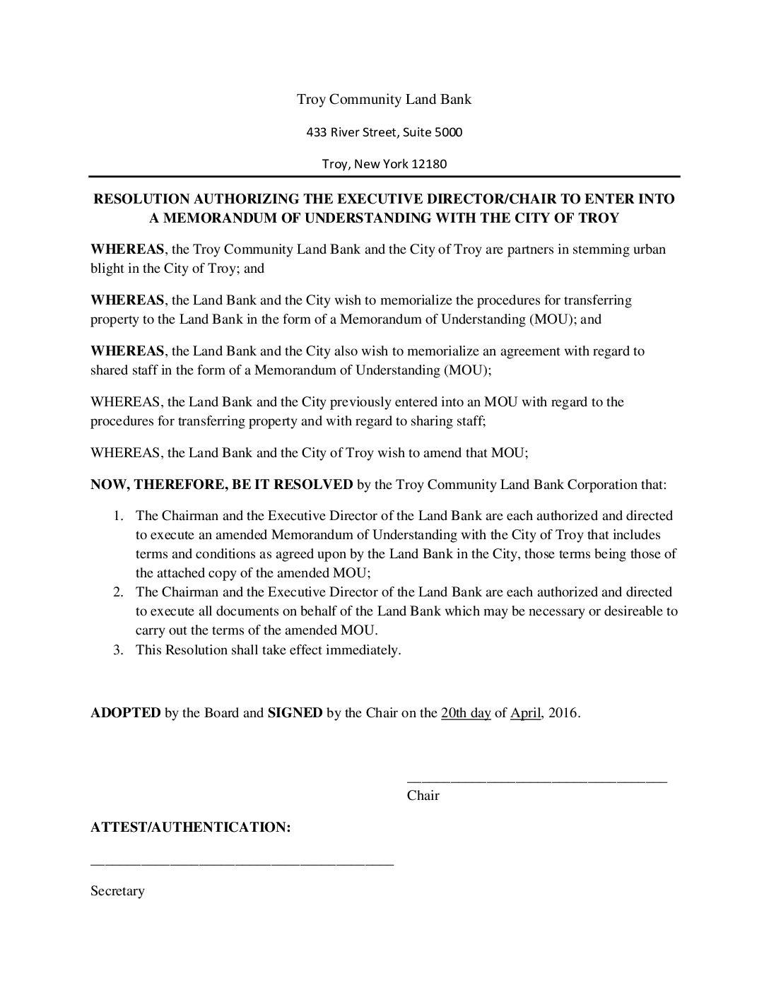 04.20.2016 Resolution Authorizing Exec. Director Amend Troy City MOU Gallery 04.20.2016 Resolution Authorizing Exec. Director Amend Troy City MOU 04.20.2016 Resolution Authorizing Exec. Director Amend Troy City MOU John Ellis2025-07-09T13:13:28-04:00April 20, 2016| Read More