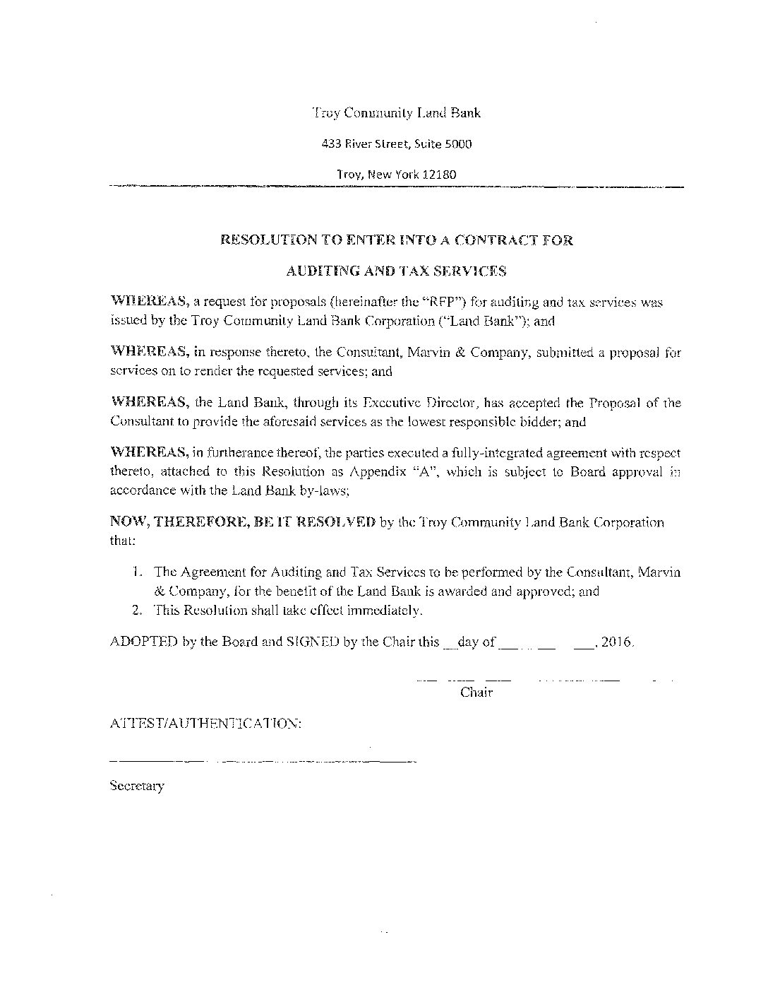 02.17.2016 Resolution to Enter Into Contract for Auditing and Tax Services with Marvin&Co Gallery 02.17.2016 Resolution to Enter Into Contract for Auditing and Tax Services with Marvin&Co 02.17.2016 Resolution to Enter Into Contract for Auditing and Tax Services with Marvin&Co John Ellis2025-07-09T12:11:00-04:00February 17, 2016| Read More