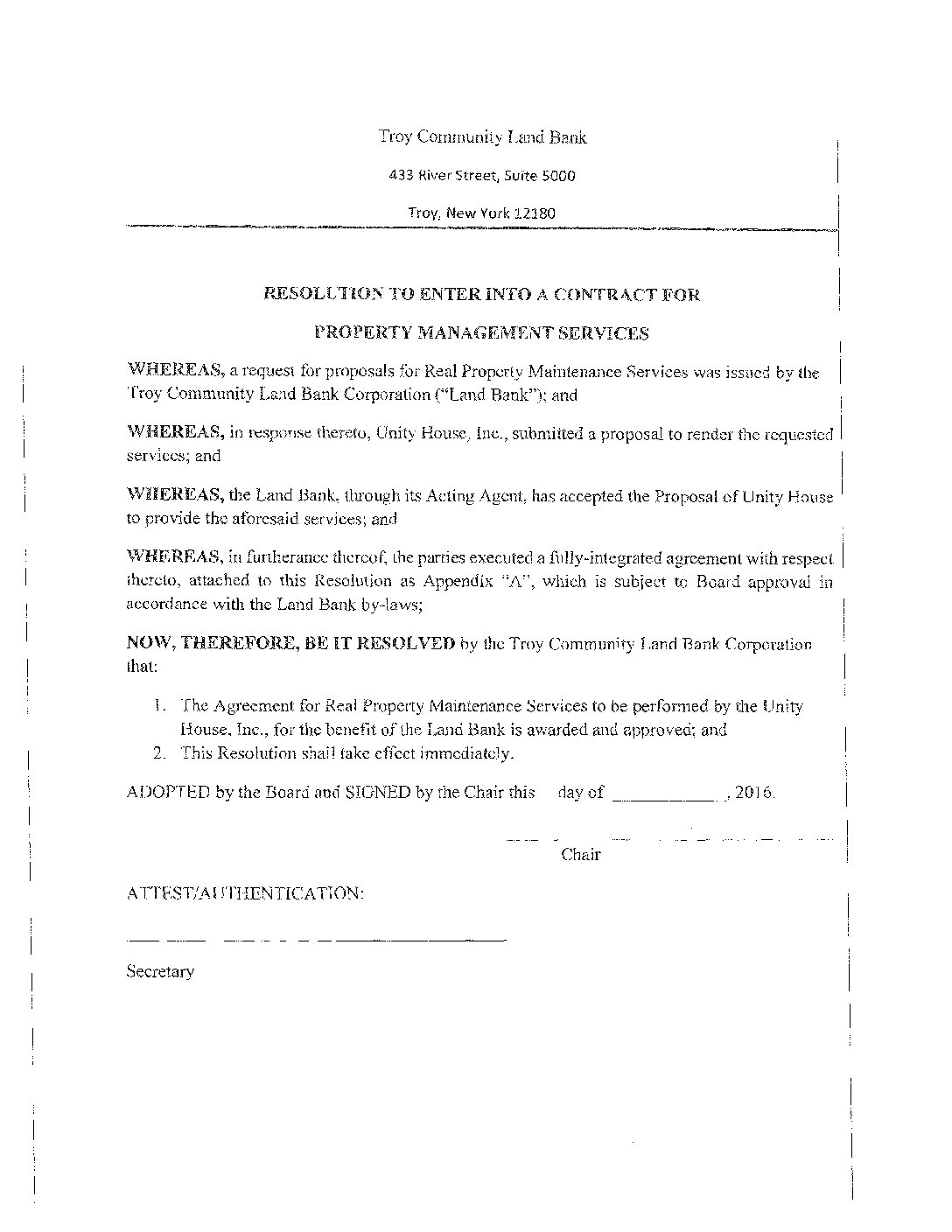 02.17.2016 Resolution to Enter into Contract for Property Management with Unity House Gallery 02.17.2016 Resolution to Enter into Contract for Property Management with Unity House 02.17.2016 Resolution to Enter into Contract for Property Management with Unity House John Ellis2025-07-09T12:10:37-04:00February 17, 2016| Read More
