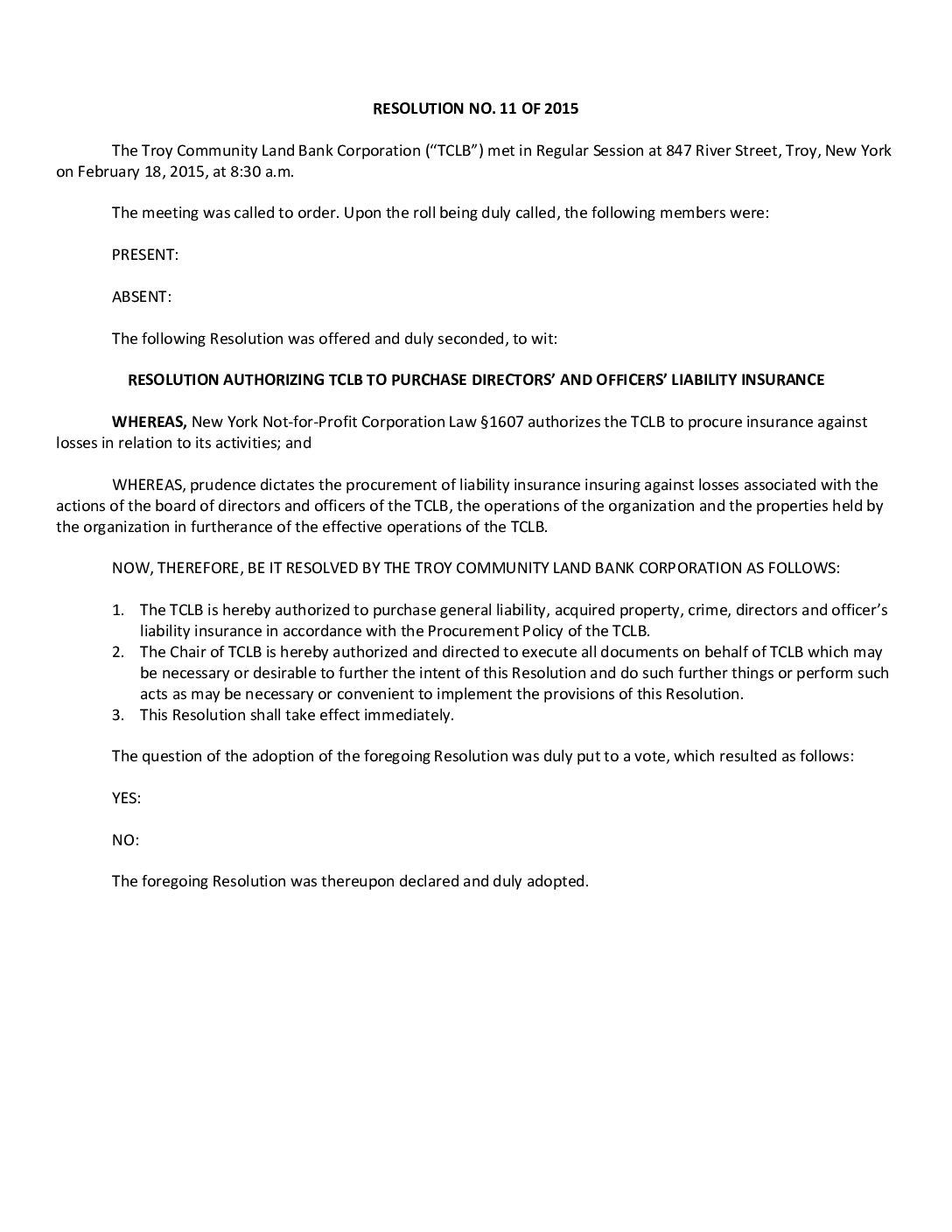 02.18.2015 Resolution 11 Purchase of Directors and Officers Liability Insurance Gallery 02.18.2015 Resolution 11 Purchase of Directors and Officers Liability Insurance 02.18.2015 Resolution 11 Purchase of Directors and Officers Liability Insurance John Ellis2025-07-09T11:19:07-04:00February 18, 2015| Read More